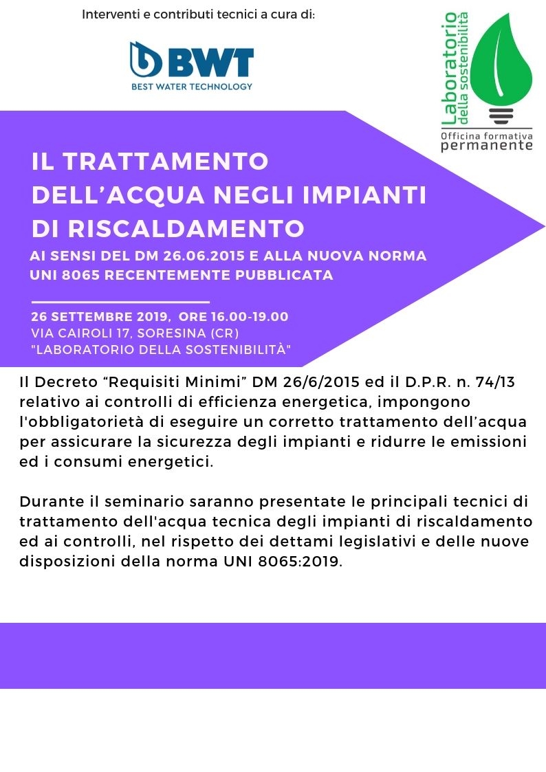 Il trattamento dell’acqua negli impianti di riscaldamento - ai sensi del DM 26.06.2015 e alla nuova norma UNI 8065:2019